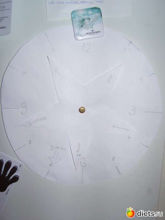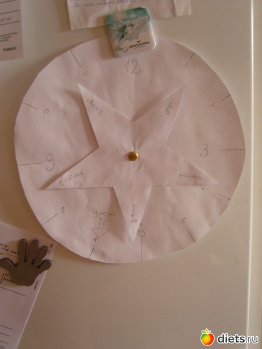 Направляем лучик звёздочки на время первого приёма пищи и часики показывают нам время следующих перекусов )