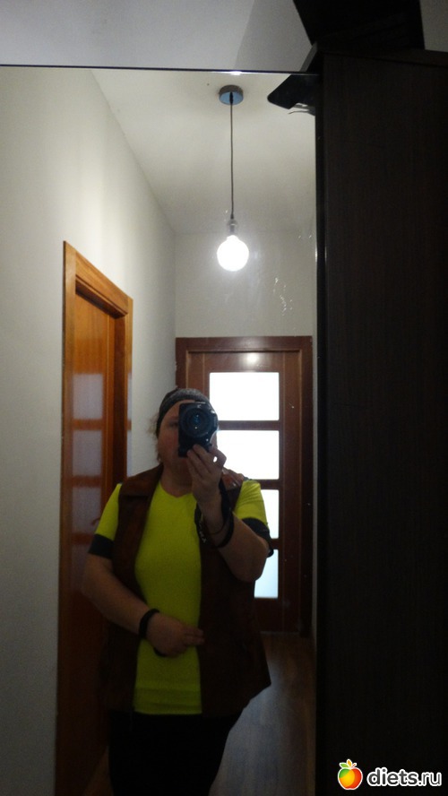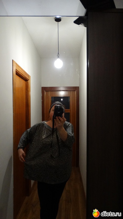Я на начало сбрасывания лишних кг, это конец лета был, тоже сделала фото, правда не в какой-то вещи, т.к. на меня тогда ничего не налазило из моего прежнего гардероба - 100 кг, не шутка, а в том, что мне казалось, хоть как-то стройнит! Это были черные трикотажные брюки и водолазка! Такая женщина-кошка, только разжиревшая! Но, промежуточных фото не делаю, видимо, чтобы контраст был сильнее, когда летом снова сделаю фото. А так, полные шкафы новой одежды ждут, когда я смогу всё это носить. Когда я носила вещи 52 размера, то уже тогда понимала, что занимаюсь самообманом, размер был уже явно 54, и чтобы не жиреть дальше, специально покупала одежду только 48-50 размера. А теперь вот думаю, а не велика ли она мне будет летом-то?