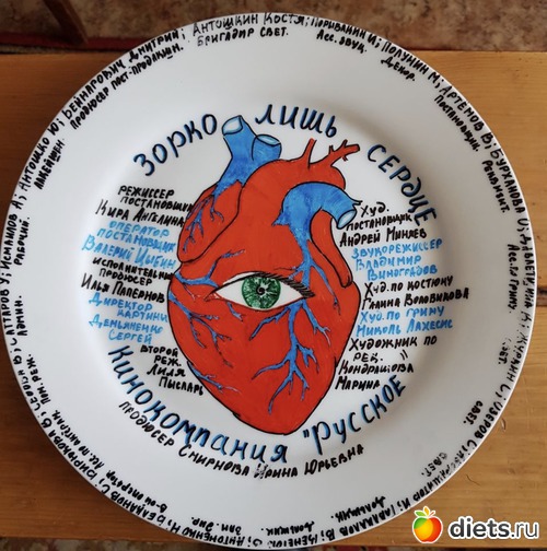 По традиции киношников после 1-го кадра бьётся тарелка, эту мне было бить жалко, так как накануне я с ней проковырялась до трёх ночи!))