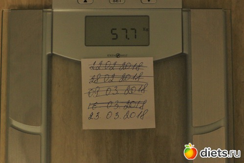 Не знаю как это получилось, но за 2 дня я согнала все 2 кг наетые до этого за 4 дня (видимо вода) и ещё за 2 дня ещё чуть больше килограмма....