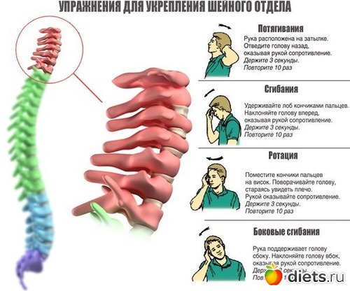 1. "Маятник". Поворачивайте голову по/против часовой стрелке, при этом старайтесь держать кончик носа неподвижным. Повторите то же самое с опущенной и высоко поднятой головой.
