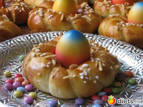 Нашла интересный рецептик к Пасхе пасхальных веночков. Думаю, что сделаю, т.к. мои дети не очень любят куличи, а эти веночки и небольшие и выглядят нарядно