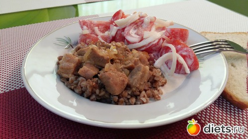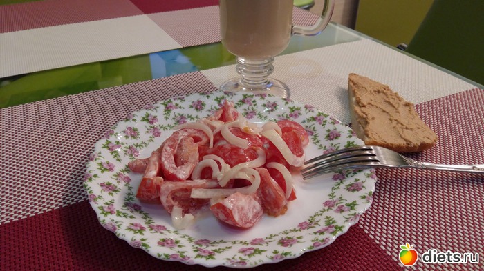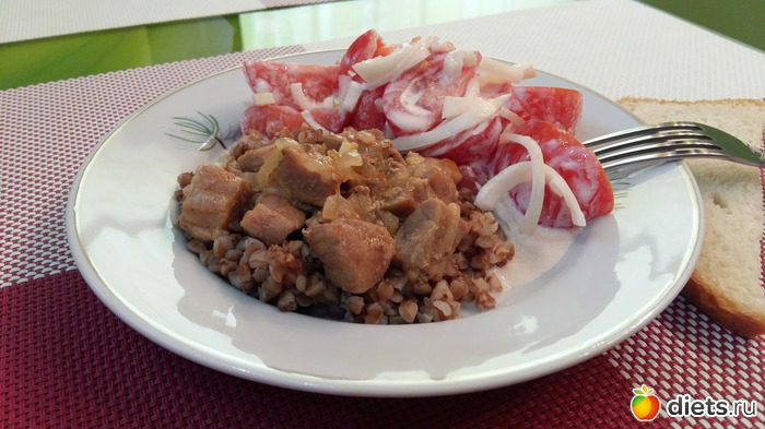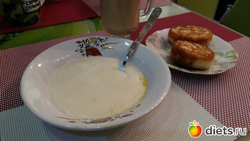 Утром каша грамм 150-170 и два оладушка грамм по 30, чуть меда и кофемолоко еще и масла немного в каше. Обед все вместе чуть больше 300 грамм. Так что все нормально.