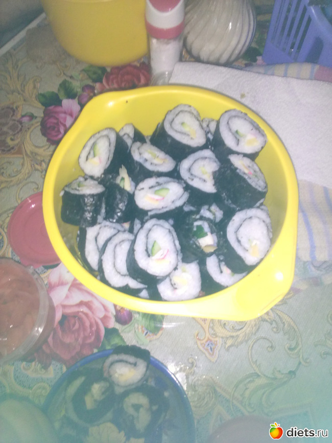 Сегодня угли. День суматошный. Пока дочу собрала, племяшка в гостях. Своим наделала вот такой таз ролов. На весы не вставала. Некогда было да и после вчерашнего вина.. Я не знаю, как другим удается худеть со спиртным, но у меня после каждого глотка плюсует.