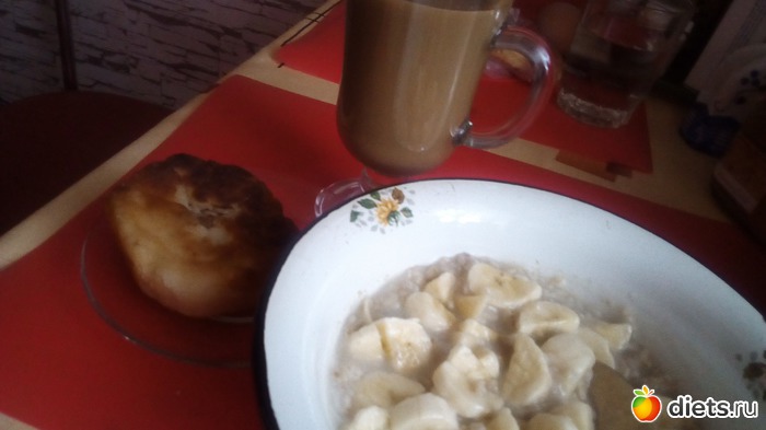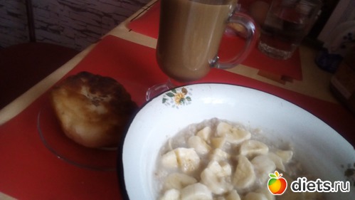 -Овсяная каша с бананом+беляш+кофемолоко
