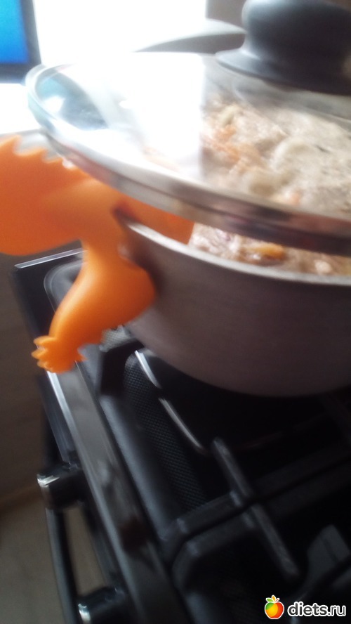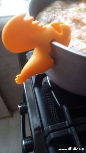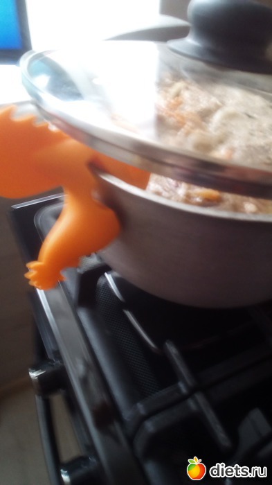 Приспособление для кастрюлек-можно класть ложку, можно класть крышку так, чтобы из кастрюли не убегало!(Обычно я показываю лопаточку. Лопаточка или палочка есть вкаждом доме. А теперь обратите внимание на такого силиконового петушка! Спасибо нашей Иннуле! Я и не знала, что есть такое! Думаю и многим это будет в новинку!