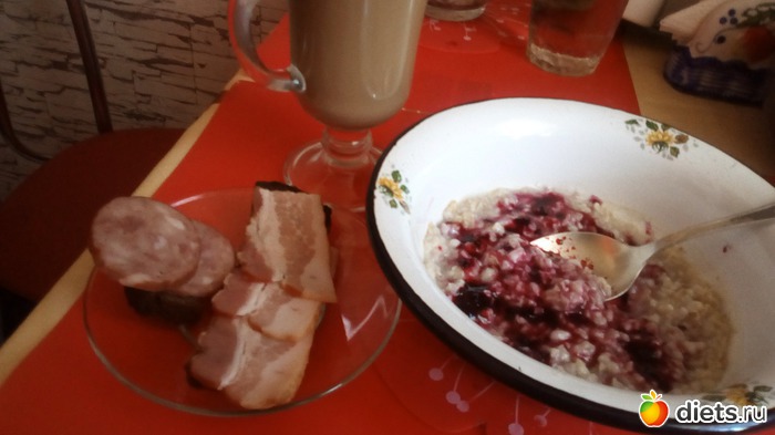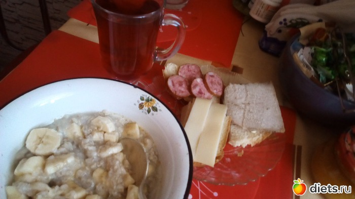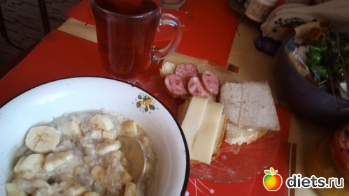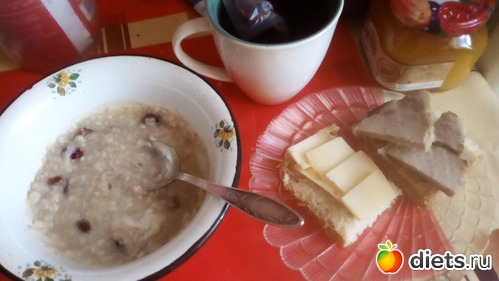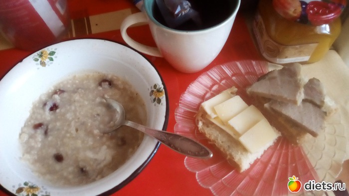 (бутерброды-кажутся большими. Но там-хлеб с семечками, домашний, кусок, разрезанный пополам= 44г+ сливочное масло)(я ем ежедневно, немного)7г+сыр-настоящий швейцарский грюер(сестра из Цюриха привезла)-17г,+буженина домашняя 35г. Каши-в готовом виде 120г.)