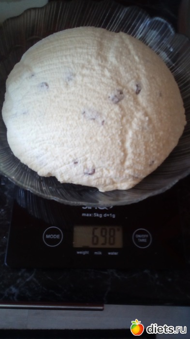 Да и изюма маловато, что-то не рассчитала немного. Теперь буду знать. Я делала из бутылки молока Милава(белорусское, не длительного хранения), в ней 930мл+банку сметаны 15% 320г+2 яйца крупных. Получилось после отцеживания сыворотки 430г творожной этой массы. Много получилось, думала граммов 200 выйдет-а вышло в 2 раза больше. Затем 150г сахара+пакетик ван.сахара+50г изюма+пачка масла 180г.