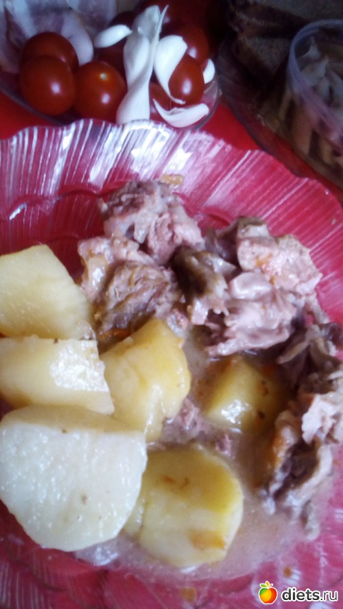-Картошка с мясом, тушеная с морковкой и луком.