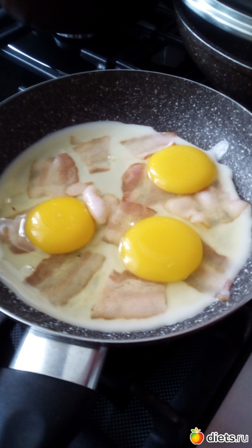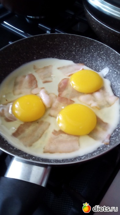-Яичница с беконом(муж захотел на завтрак)