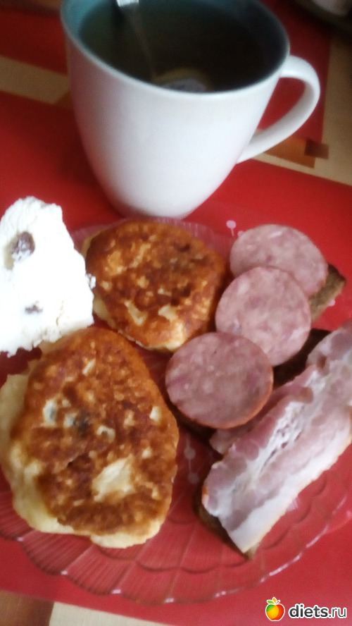 -Сырники, бутерброды, чай с лимоном