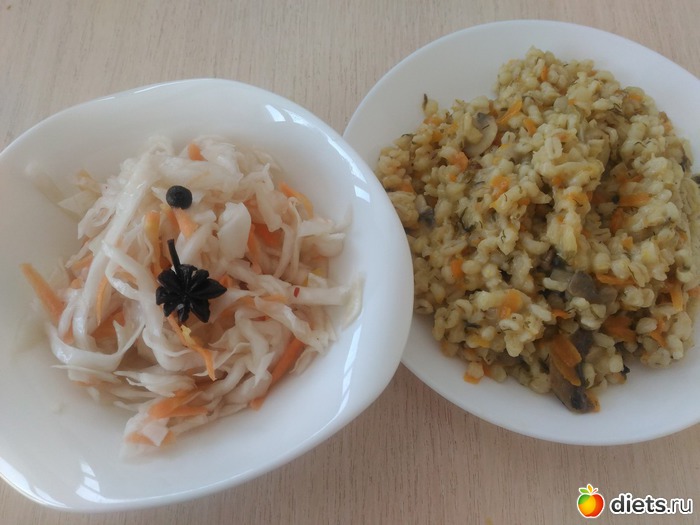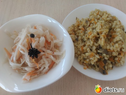 нехилая такая порция перловки и маринованная капуста