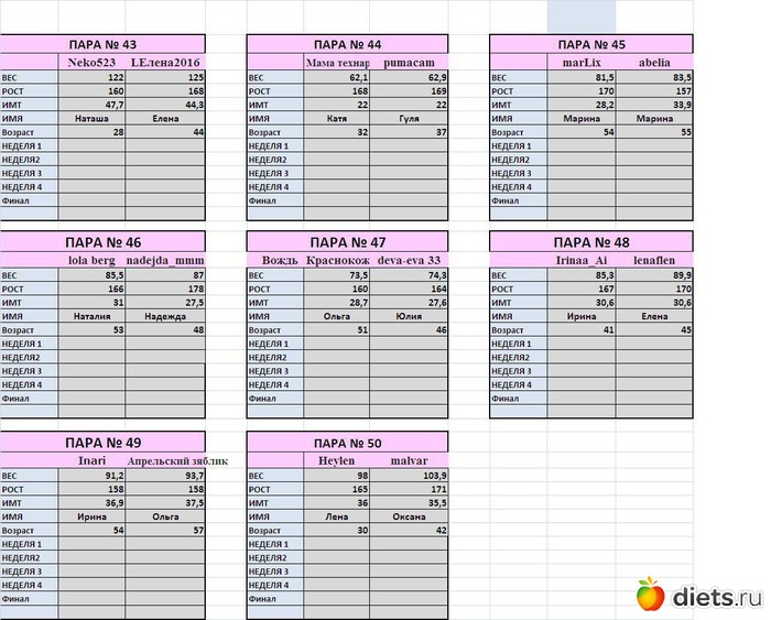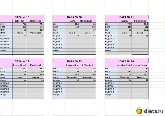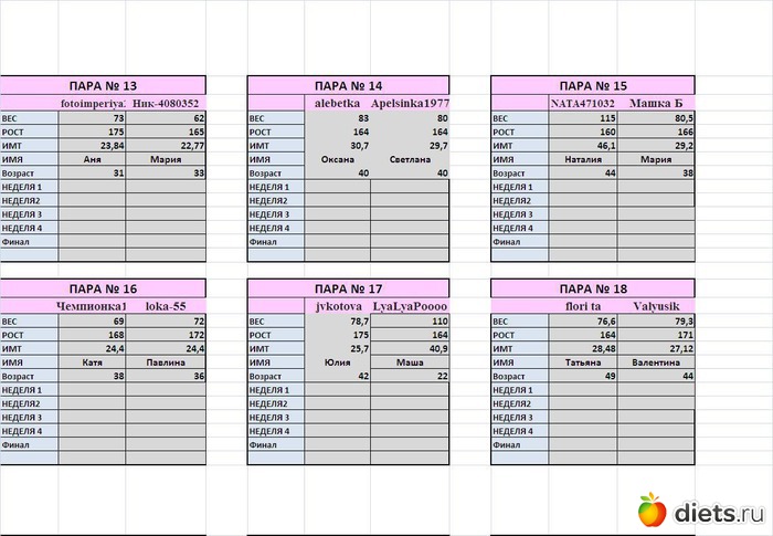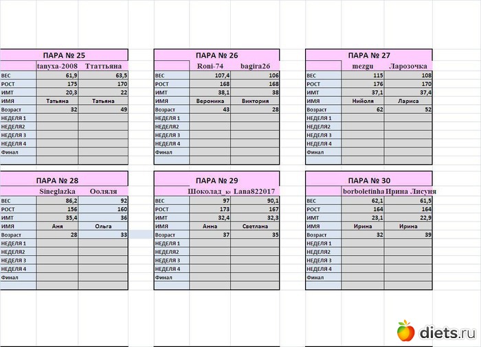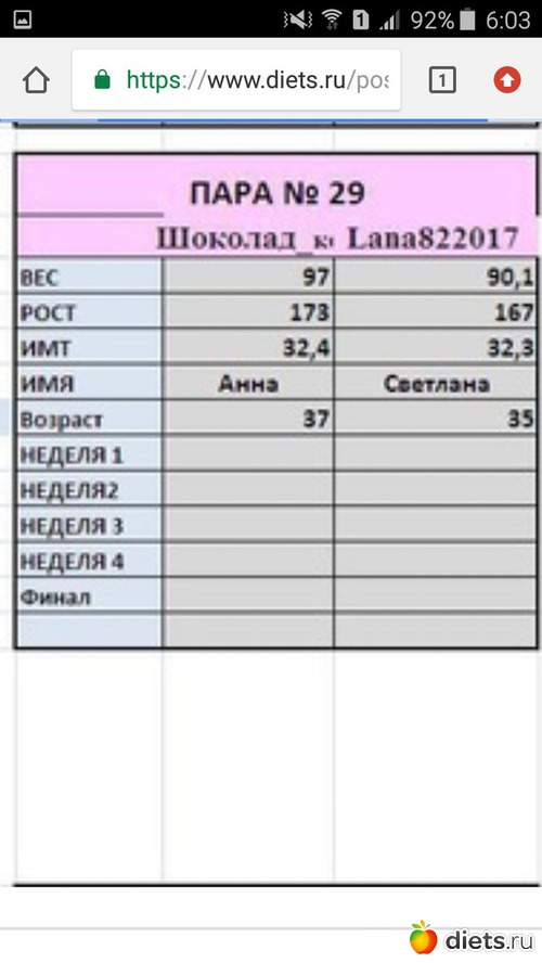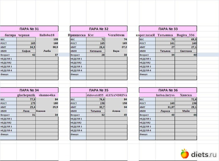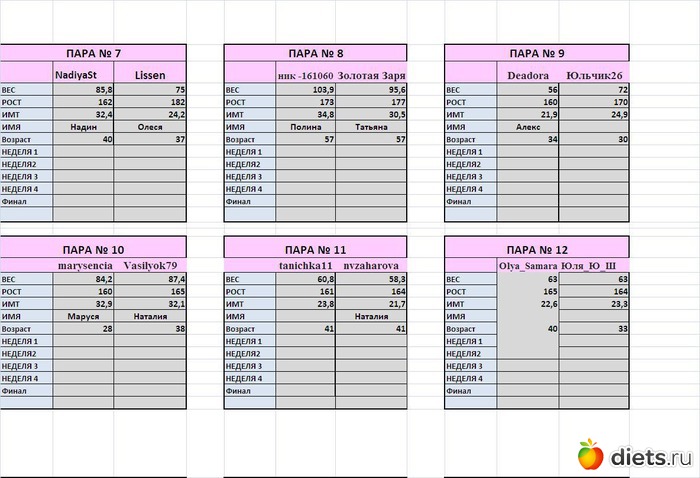 Она тоже без пары. Если договоритесь, сообщите мне и сможете перейти к 1-му взвешиванию.
