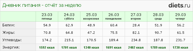 эту неделю я разгонялась по МФ с калорийностью 1700. На следующую неделю 1800 ккал. ТВН=67,6 (+100 гр)