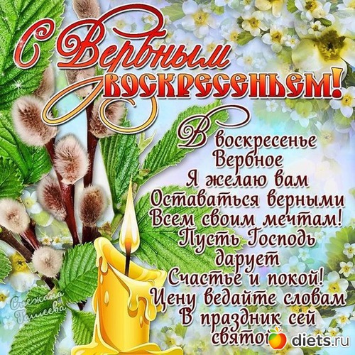 А вечером он приходил к ней, чтобы позвать ее погулять. В принципе, уже давно доказано, что человеческая мысль материальна. Все, о чем мы думаем, рано или поздно обязательно случается в реальной жизни. Возможно, у Вербного воскресенья такая энергетика, которая позволяет воплотить наши мысли в жизнь гораздо быстрее, чем в любой другой день.