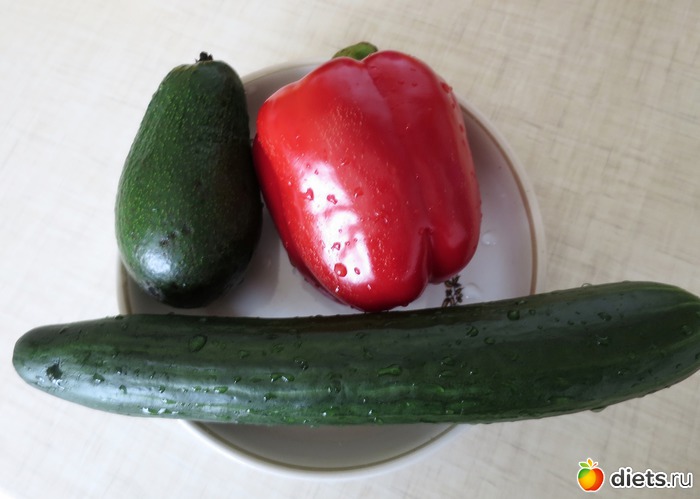 Использовала авокадо ( кстати такое спелое было, в этом повезло), огурчик, и красный сладкий перчик.