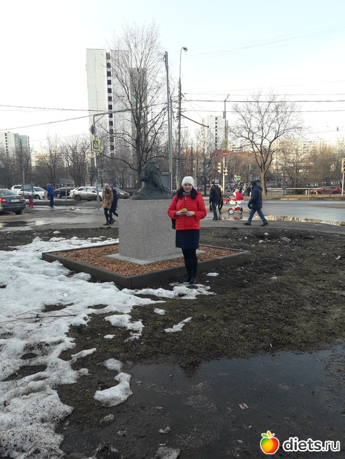 пришлось довольствоваться малым - встретиться на середине дороги и сфотографироваться у памятника скульптору Коненкову, на одноименной улице.
