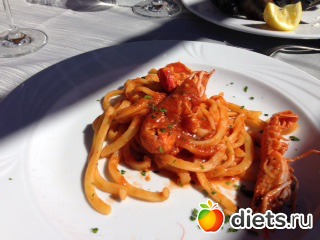 Надо сказать, что у моей подружки проблемы с зубами, а дочь в принципе не ест, поэтому все креветки и лобстеры из пасты и горячего перекочевали мне. Ну сами макарошки я конечно не доела.