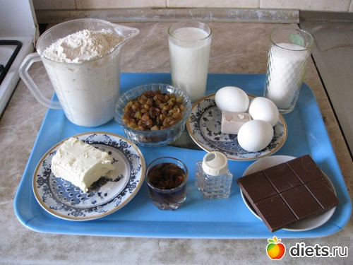 Изюм промыть и залить водой с коньяком. Дать настояться
