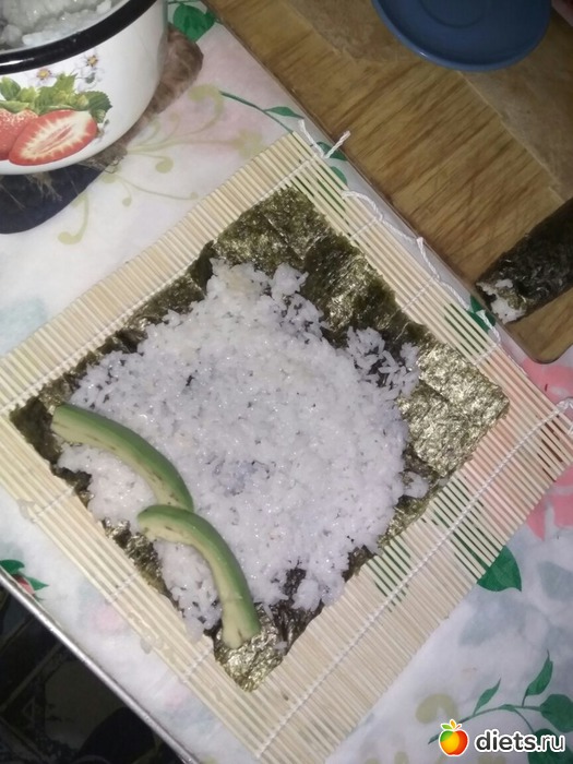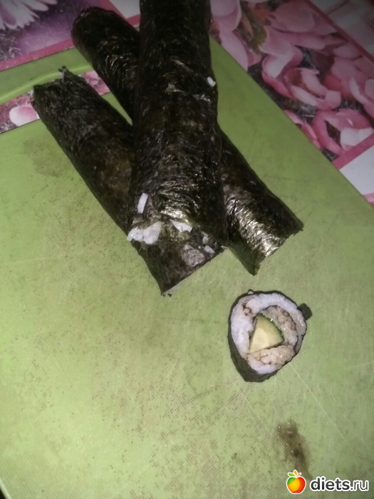 Сделала суши с авокадо (не очень хороший попался.. горчил) и огурцом (классика)