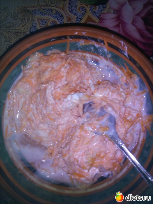 О варенец и морковь с чесноком заправленная сметаной. Творог и сыр.