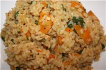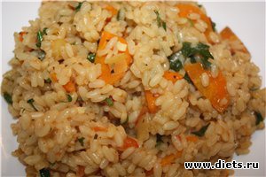 Сначала тушу овощи 5-7минут, добавляю рис и на медленном огне вариться.