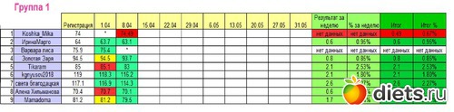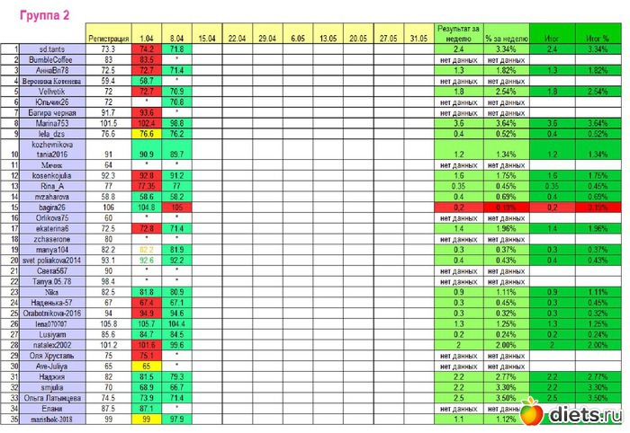 Вторая группа, которая худеет со спортом полегчала за эту неделю на 32.25 кг (что по 1,34 кг на каждого).