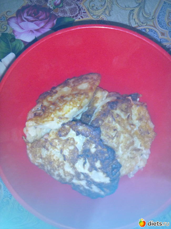 Три оладушка с капустой, давно я их не стряпала. Вкуснотаааа.