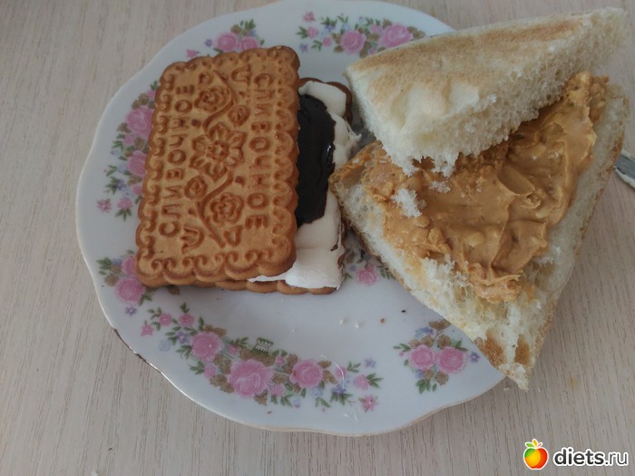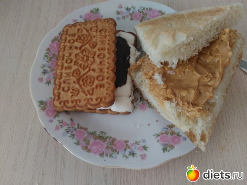 У - лепёшка с арахисовой пастой и печенье с расплавленными маршмеллоу и шоколадом