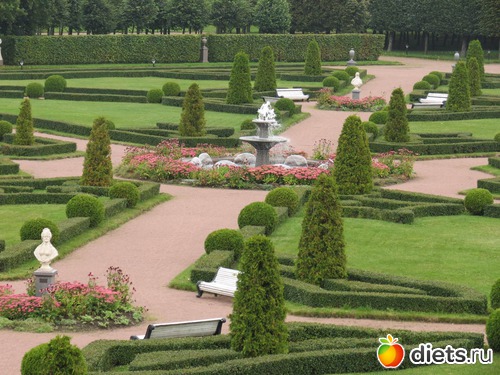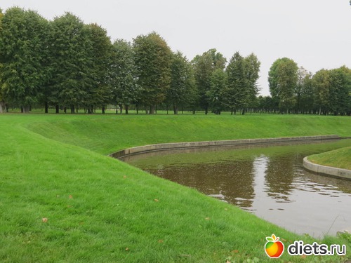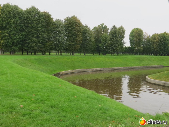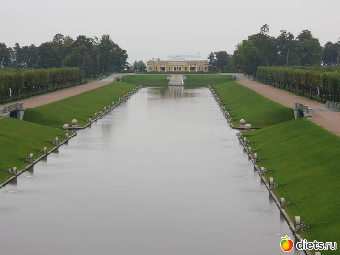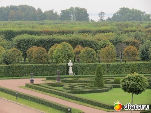 Сегодня ничего не искала, много не ходила. Села на маршрутку, меня привезли к воротам. Чуть прошлась. Везде указатели, все сразу нашла. Какая там организация всего! Нигде лучше я не видела. И специальное экскурсионное бюро, и админ, и касса, и камеры хранения, гардероб и всевсевсе. Кресла для ожидающих свою экскурсию. Кафе, в кафе - выставка мозаики. Дождалась своей экскурсии и пошла. Посетили с экскурсоводом дворец. Туда в одиночку не пускают. Режимный объект, проверки маманегорюй. Дворец шикарен. Парк бесподобен. Несостоявшийся Версаль. Воды не хватило тут для мощных фонтанов. Перенесли эту идею в Петергоф.
