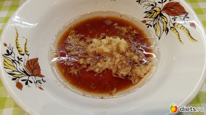 Для маринада смешиваю пару столовых ложек соевого соуса и столько же растительного масла