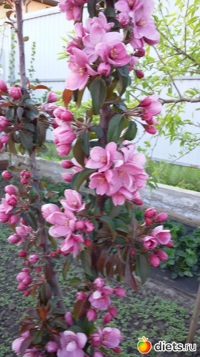 А что это за дерево с прекрасными розовыми цветочками, похожими на яблоневые? Или всё-таки яблоня?