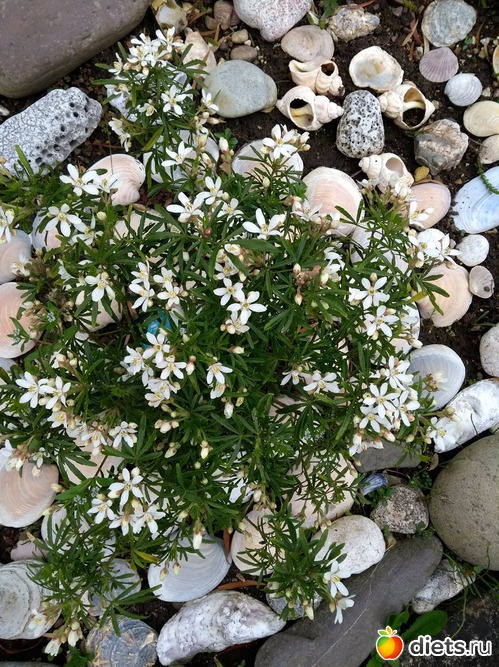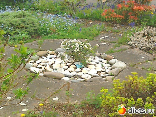 Этот уголок с ракушками и камнями перед окном в середине, не в саду.