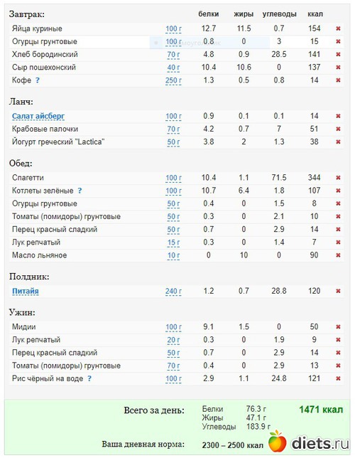 Вот приблизительно так. Это один из дней, когда калорий побольше
