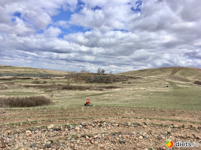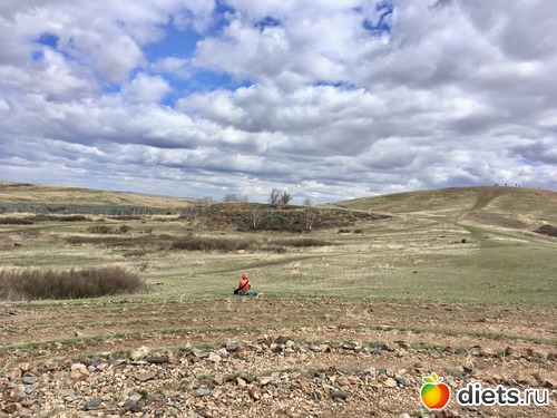 Еще есть люди, которые приехали надолго и никуда не торопятся - лежат на склонах этих горок. И ничего им не надо. Хорошо им. Счастье для отдельного человека в абсолюте. И далеко все - родители, дети, семьи, работа и заботы. Пирожки по 10 рублей вокруг продают, борщ за 14 рублей, баня 20 рублей, туалет бесплатный. Вот и думаешь, что выбрать «созидание» или «созерцание». А может правда согласиться на поле в Аркаиме все в цветах с любимым человеком? Хотя говорят, летом уж больно много людей, совокупляющихся вокруг. Не потянет мое сознание такого))).
