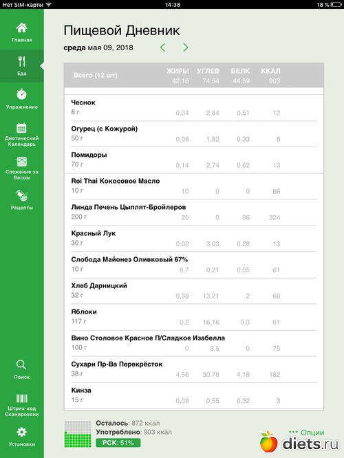 Калорийность продуктов