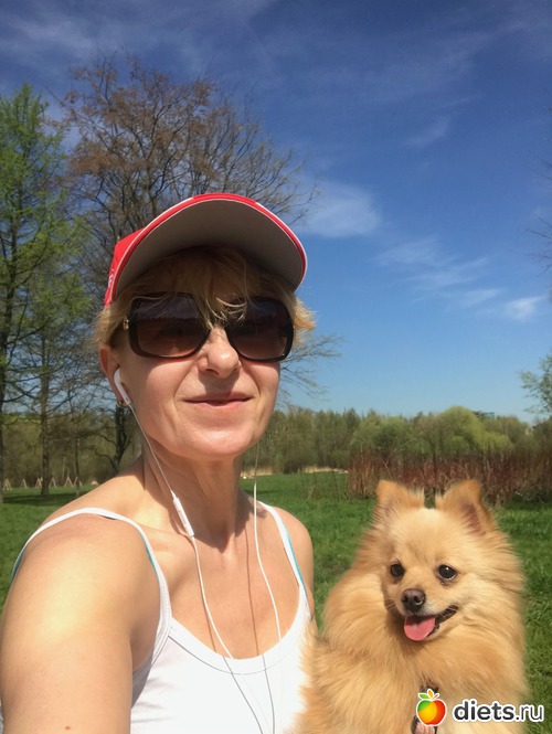 Решила немного побегать. Бегала в коротких шортах и в самой открытой майке. Но Саня имела свой интерес в парке. У нее бЕлки, а я тут убегаю. Короче - конфликт интересов на лицо! Или на морду?