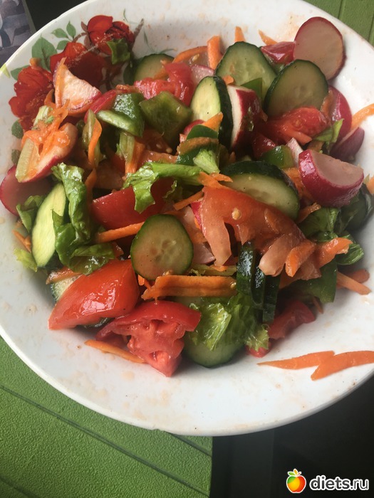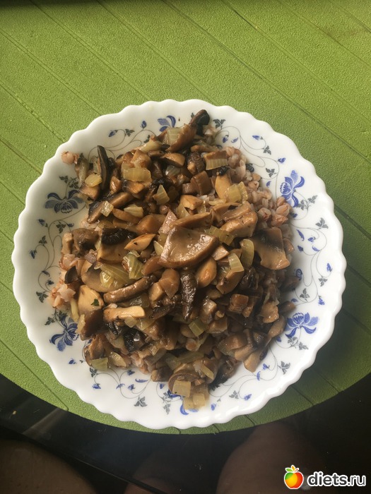 На обед- жарено/вареные шампиньоны с луком, гречка, салат из свежих овощей с маслом.