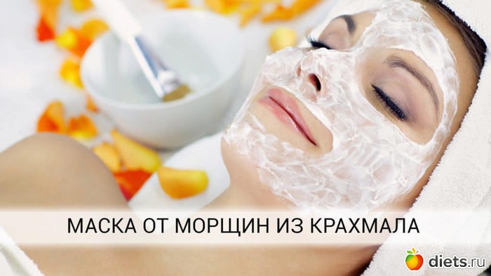 Это маска-скраб, очень действенная против морщин, хорошо их разглаживает, сужает поры и повышает тонус, делая кожу упругой. И собственно приготовление маски: крахмал, молоко и кухонную соль смешивают 1:1:1, в конце добавить ложечку меда. Наносим маску толстым слоем, и медитируем 20 минут. Смываем тепленькой водичкой.