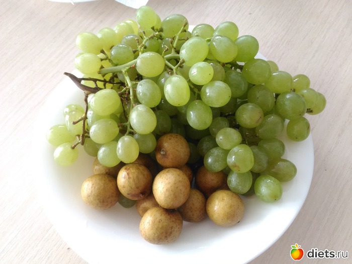 перекусы были виноград, банан и лонган.