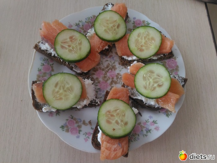завтрак бутеры с рикоттой и форелью и одна плюшка