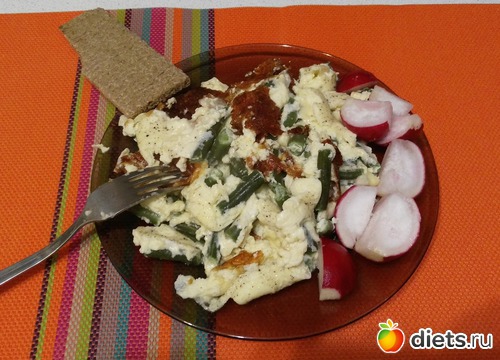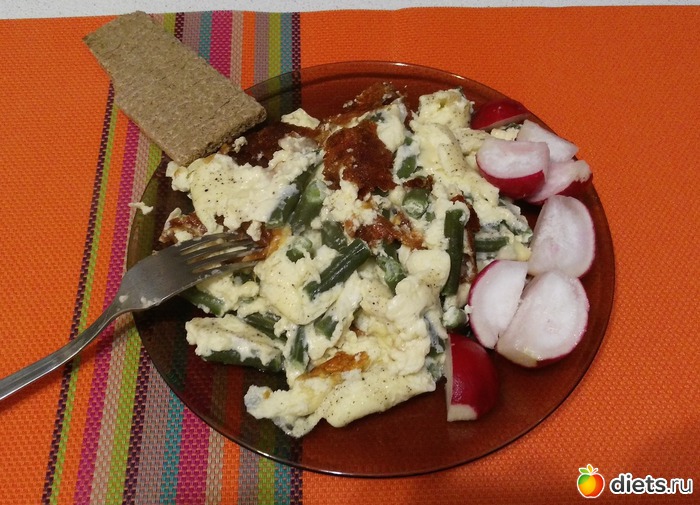Ужин: что то он не очень красиво получился (омлет со стручковой фасолью и сырной корочкой)