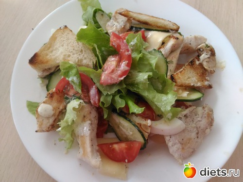 на ужин был а-ля цезарь, с заправкой из сметаны, дижонской горчицы, бальзамика, желтков яиц, чеснока, перца и соли. Обожаю эту заправку в 100 раз вкуснее любого майонеза