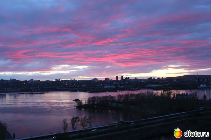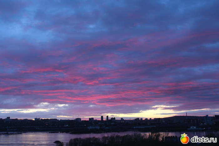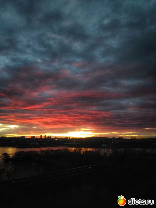 небо менялось каждую минуту, от нежно розового, до апокалиптического красного!
