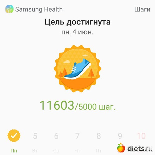 5 июняВ этот день я забыла напрочь включить шагомер.Еле притащила свои ножки домой,контрастный душ 35 минут,приготовила ужин и бегом исправлять свою ошибку,прошагала.К ночи ножка моя сказала мне что я дурында(((