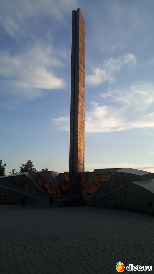 Стелла с вечным огнем на Стрелке,где сливаются 2 реки,Ульба и Иртыш