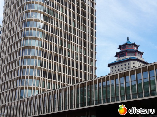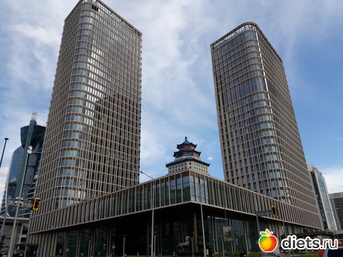 например, кусочек Китая, он с дугой стороны, но среди небоскрёбов видна его верхушечка