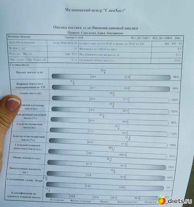 14% жира, 8 кило жировой массы, ИМТ 20,4.