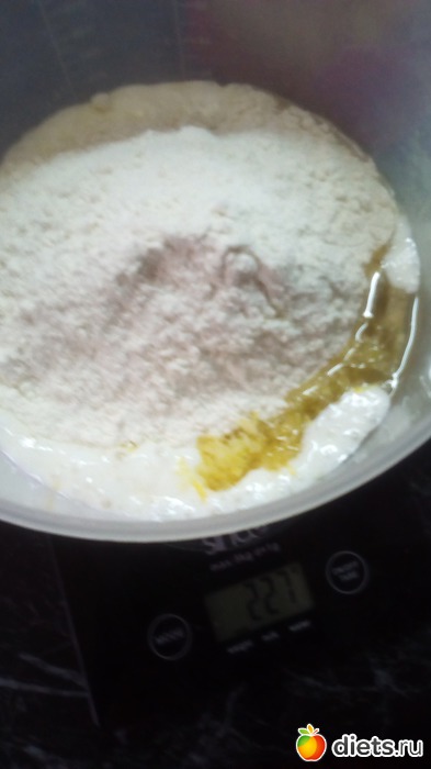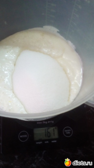 Муки может потребоваться 250-280г. Добавляем в тесто, не спеша. Все зависит от влажности и помола муки. Тесто должно получиться по густоте, как магазинная сметана.