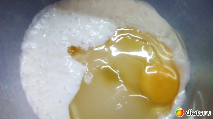 В йогурт добавим соду и разрыхлитель и дадим постоять минут 15